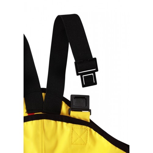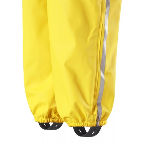 Съемный капюшон защищает от ветра и безопасен во время игр на свежем воздухе даже во время дождя. Благодаря эластичным регулируемым подтяжкам брюки-дождевики не будут спадать и сядут точно по фигуре. Съемные штрипки легко крепятся под резиновыми сапогами или непромокаемыми кроссовками и не дают брючинам задираться. Этот комплект для дождя без содержания ПВХ снабжен светоотражающими деталями, благодаря которым маленьких непосед будет хорошо видно даже после наступления темноты.