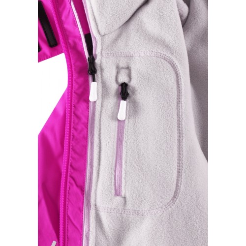 Все швы проклеены и водонепроницаемы, так что в любую погоду вашему ребенку будет сухо и максимально комфортно. В теплую погоду можно сделать куртку легче, отстегнув внутреннюю флисовую куртку – она отлично смотрится сама по себе, а в комплекте с верхней курткой сделает теплой любую прогулку. Подол легко регулируется, что позволяет подогнать куртку идеально по фигуре. Безопасный отстегивающийся капюшон защищает от пронизывающего ветра, а карманы на молнии надежно сохранят все важные мелочи во время веселых игр на воздухе. Модель для девочек.