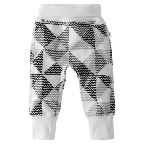 Быстро сохнущий хлопчатобумажный трикотаж идеально подходит для любого времени года, потому что УФ-фильтр 40+ защищает нежную кожу малыша от вредного воздействия ультрафиолетовых лучей. Брюки с весёлым рисунком имеют завышенную талию из резинки в рубчик и брючины с длинными манжетами на резинке для обеспечения хорошей посадки и комфорта. Тонкие и плоские швы мягкие на ощупь и не натрут нежную кожу.