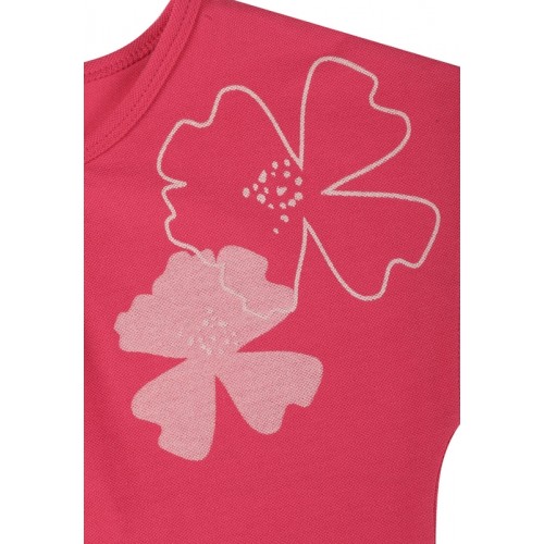 УФ-защита 50+ оберегает нежную кожу ребенка от вредных ультрафиолетовых лучей, а свободный крой предусматривает закрытые плечи. Футболка украшена симпатичным рисунком спереди и маленьким бантиком на подоле. Красиво и практично особенно в сочетании с юбкой Strawberry!