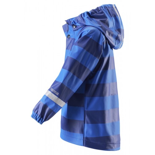 Классический детский дождевик Reima в ярких однотонных расцветках и в яркую полоску. Запаянные швы не пропустят вовнутрь ни одной капельки, а съемный капюшон защищает голову от дождя он на кнопках, поэтому безопасен во время игр на свежем воздухе.